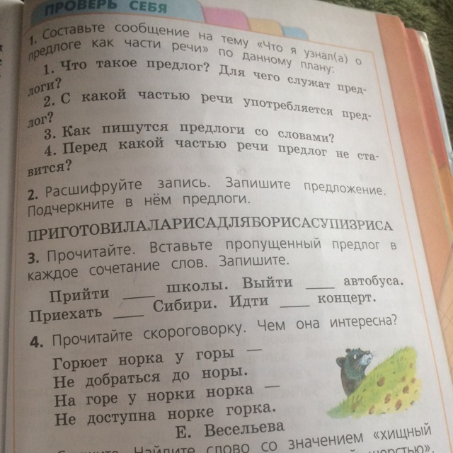 Прийти со школы . Выйти из автобуса . Приехать из Сибири . Идти на концерт .