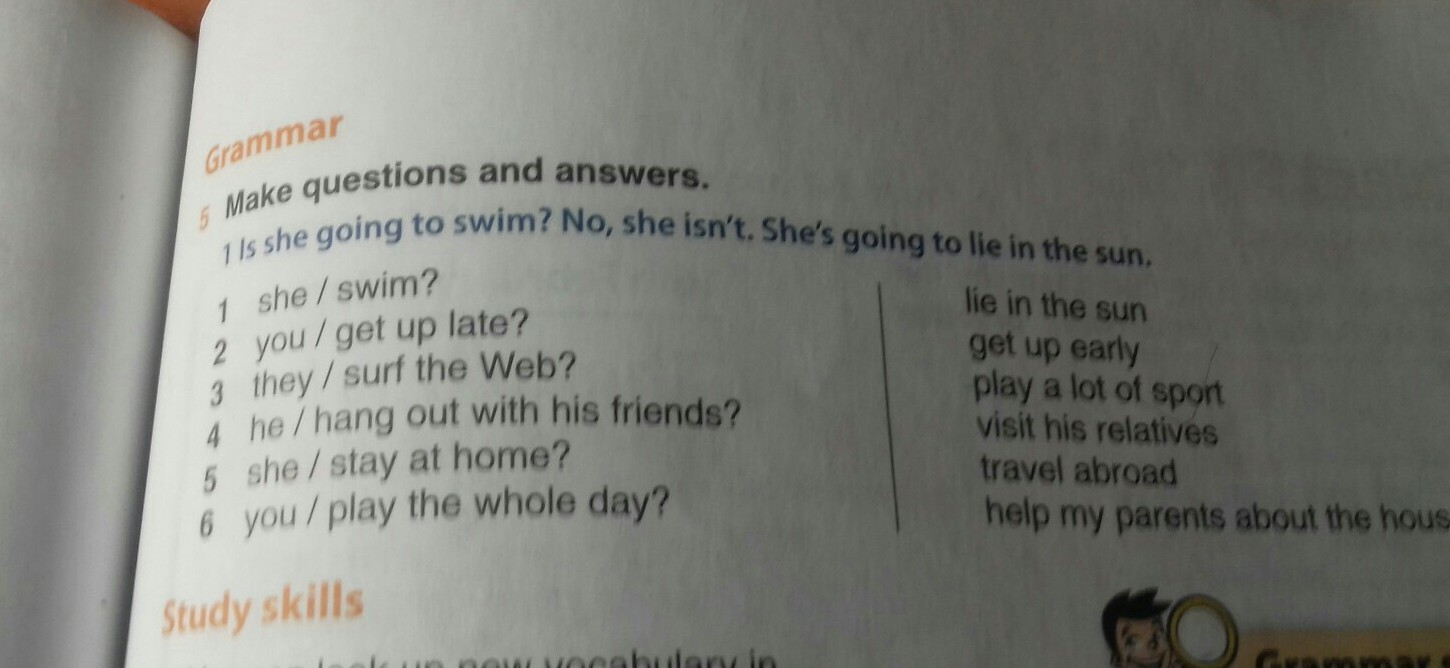 5. Is she going to stay at home? No, she isn't. She is going to travel abroad.