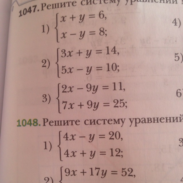 Помогите решить !!решите систему уравнения методом сложения,номер 1048,1 задание