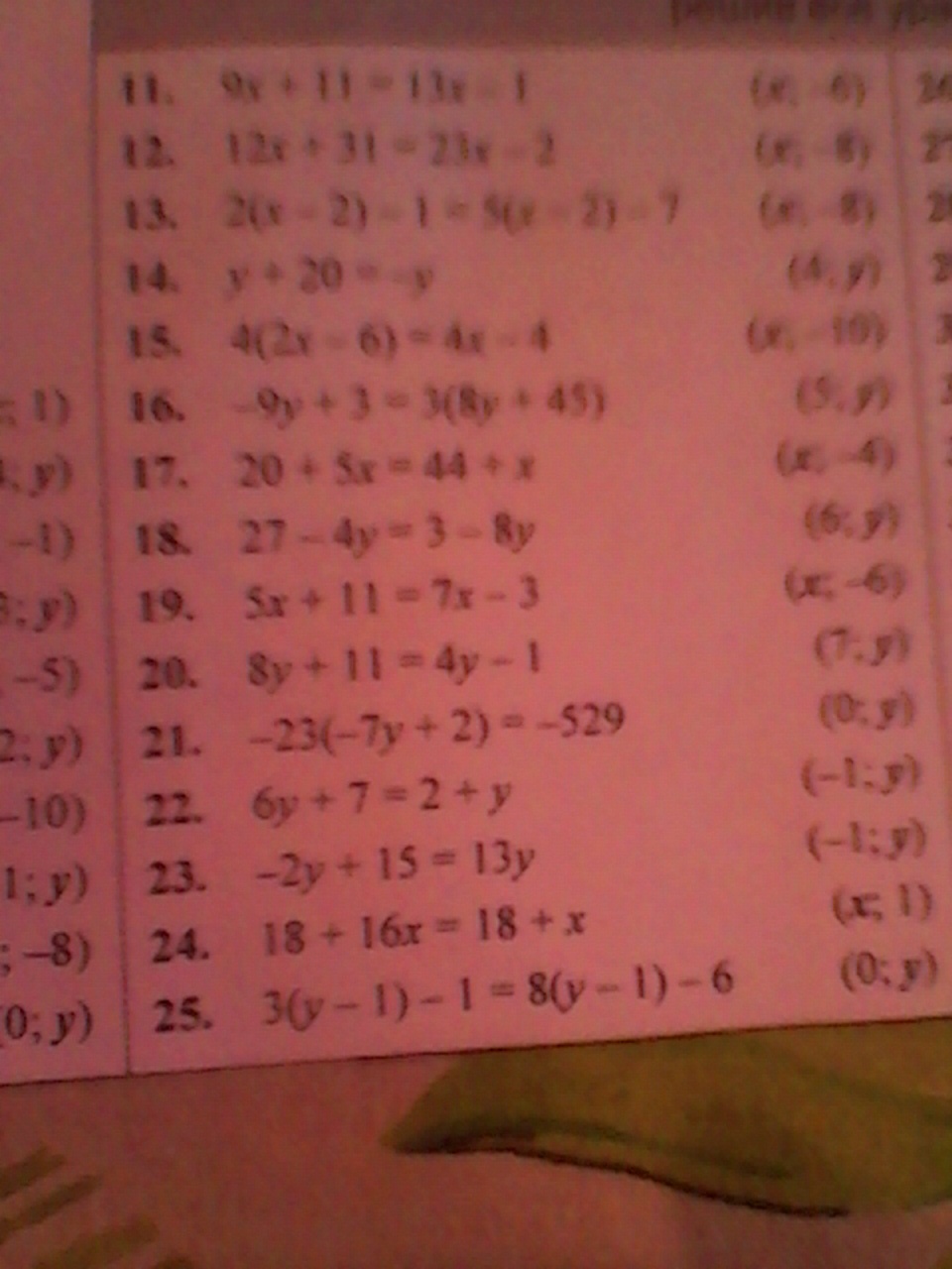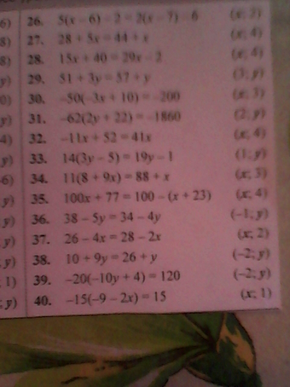 Соедините последовательно точки,координаты которых узнаете,реши в все уравнения.Пишу смазаные координаты в скобках.На картинке должен получиться олень и не забудьте указать все точки!