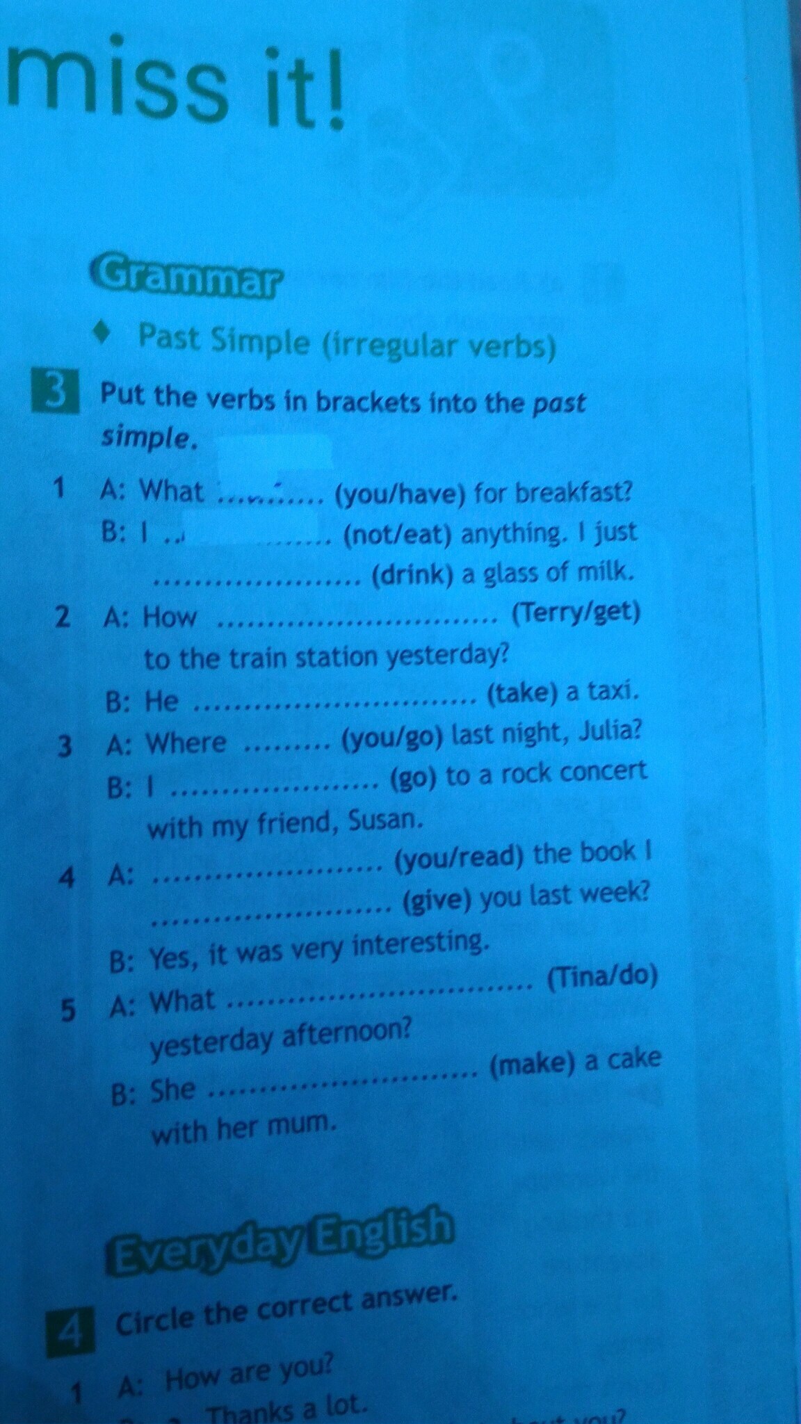 3. A. Where did you go last night, Julia?