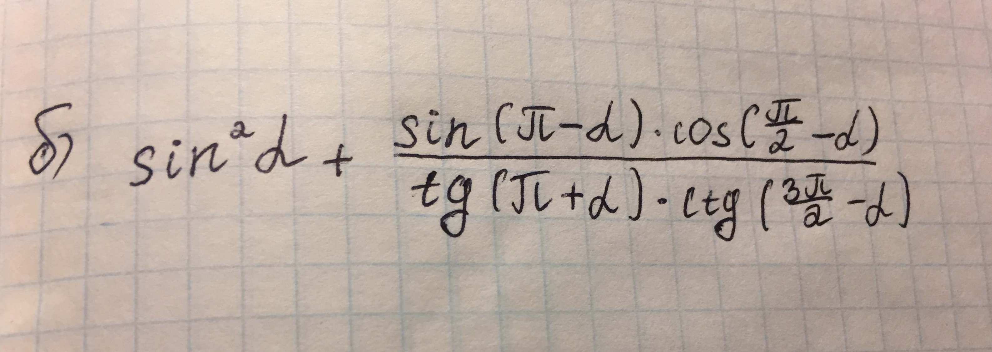 sin²α + [sin(π - α) * cos(π/2 - α)] / [tg(π+ α) * ctg(3π/2 - α)] =