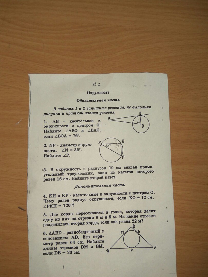 1. Касательная перпендикулярна точке О => угол AВО = 90°. угол А =180°-( 76°+90° )= 14