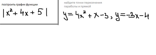4x^2+x-3=-3x-4, 4x^2+4x+1=0., Решаете - Находите Д=0 Ищете точку Х, подставляете в любую формулу и находите У