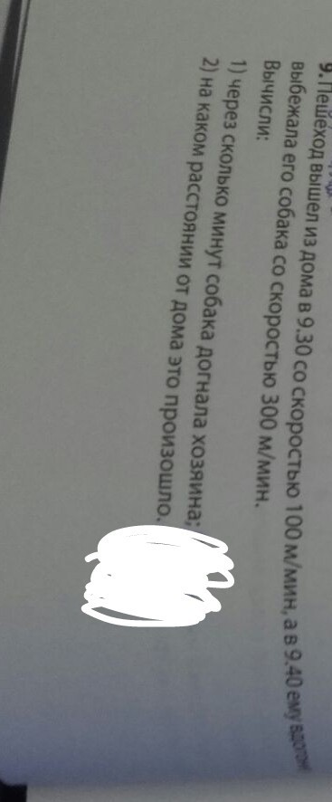 Ответ: за 4 мин. собака догнала человека, расстояние от дома 1200метров.