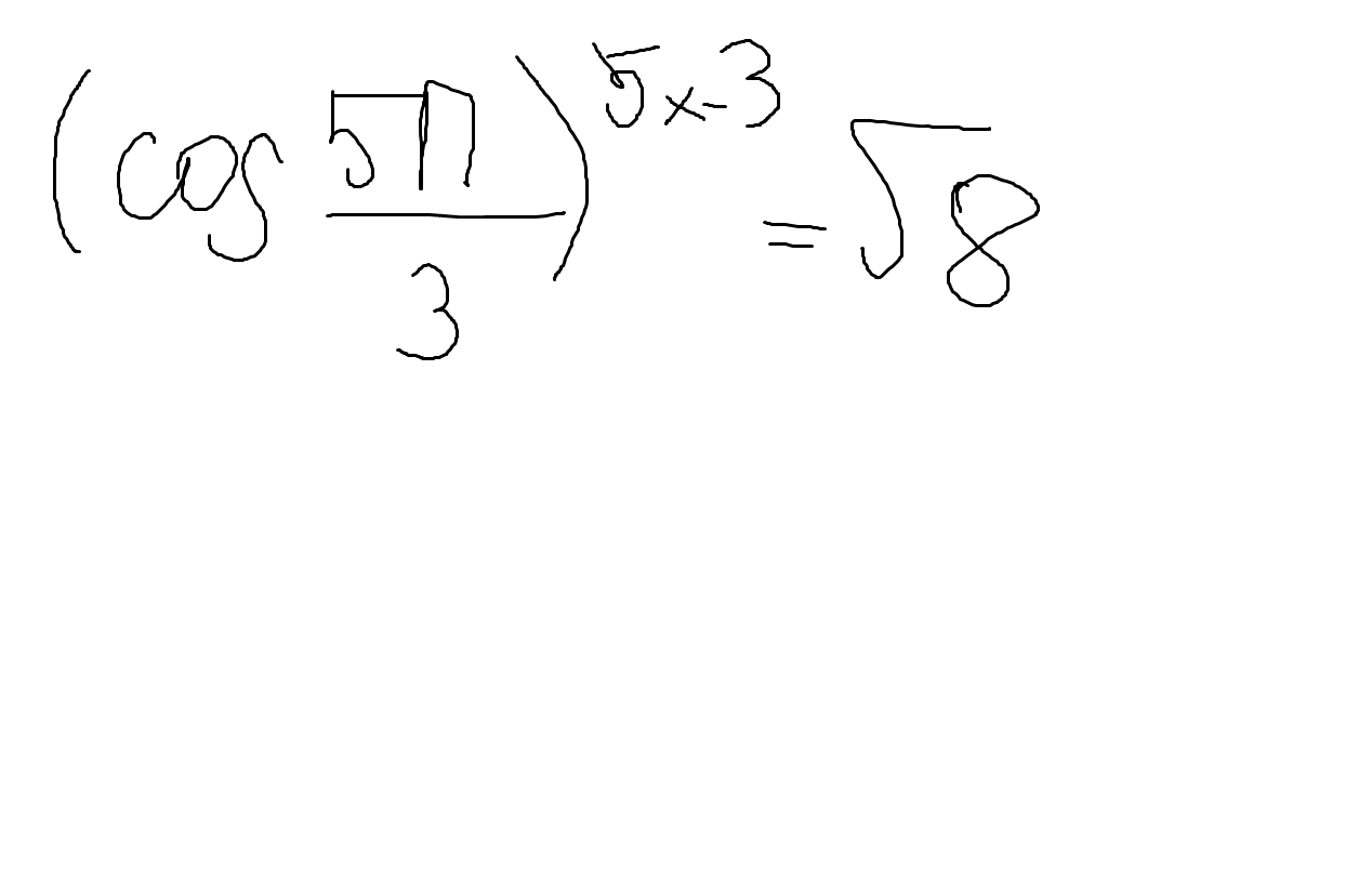 cos(2pi-pi/3)^(5x-3)=cos(pi/3)^(5x-3)=(1/2)^(5x-3)=2^(3-5x)