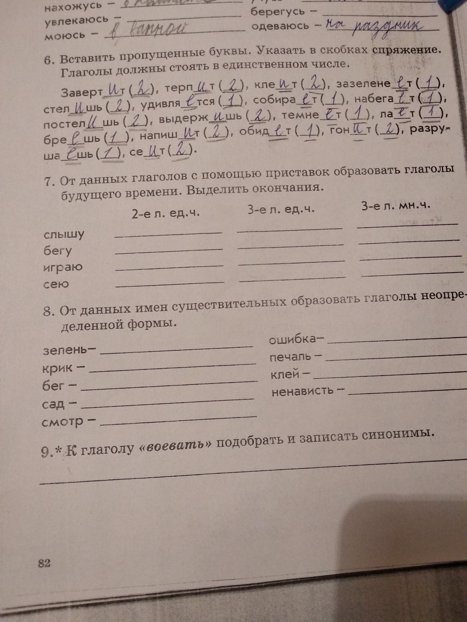 8.зеленеть кричать бегать сажать смотреть ошибаться печалиться клеиться ненавидеть