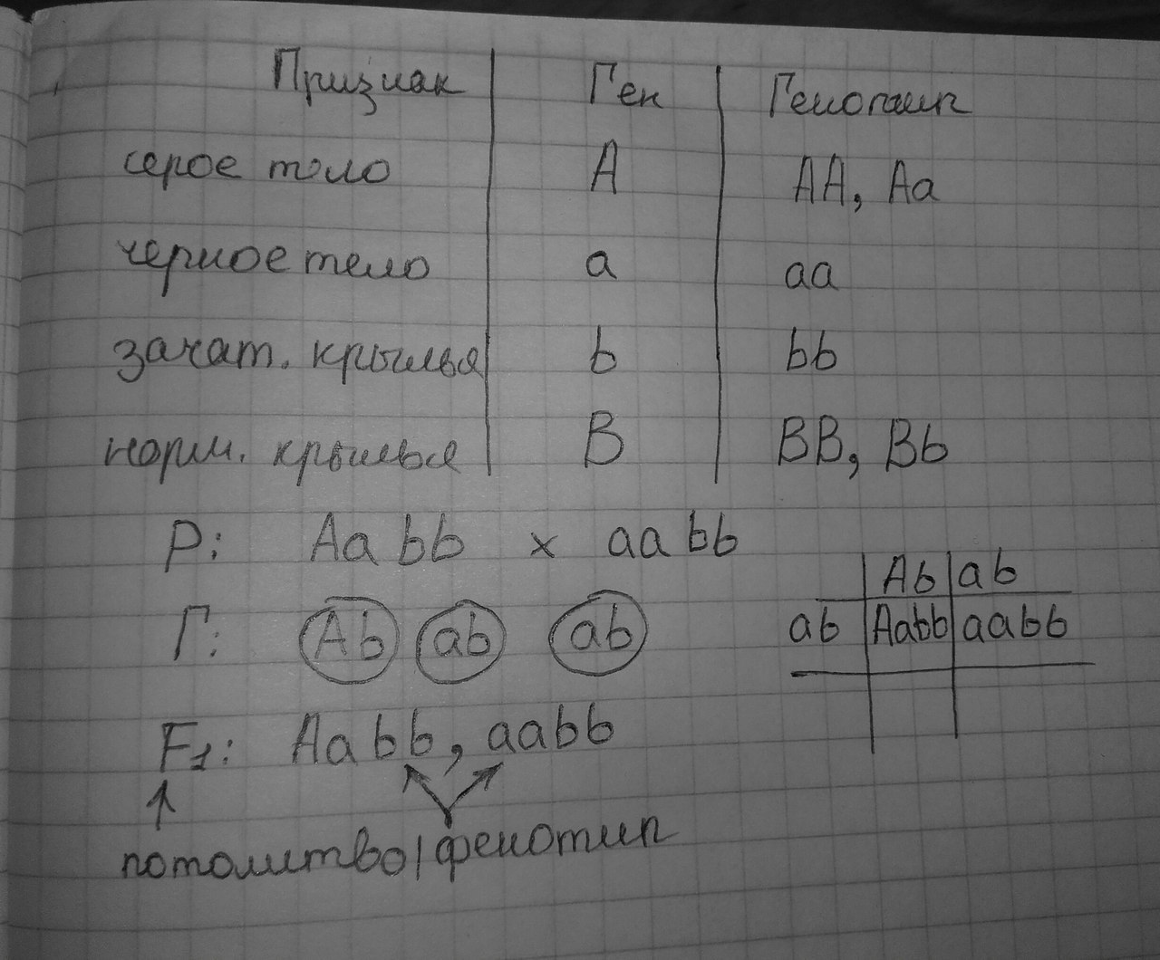 Скрестили гетерозиготную плодовую мушку дрозофилу по первому признаку, имеющую серое тело и зачаточные крылья с мушкой, имеющей черную окраску тела и зачаточные крылья