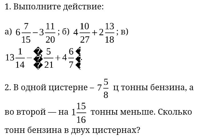 1) 35/8 -15/16 = 70/16 - 15/16 = 55/16 или 3 и 7/16(ц) - во второй цистерне;