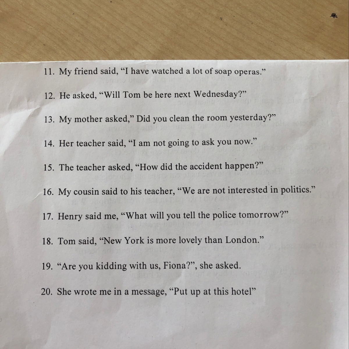 13. Моя мама спросила:,, Ты убрал свою комнату вчера?"