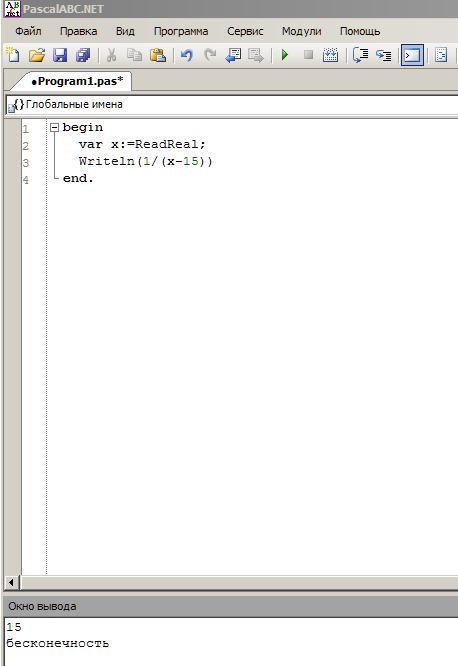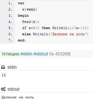 Вычислить значение выражения 1/(x-15) для любого x (подумать, почему здесь нужно использовать условный оператор). В паскаль пожалуйста