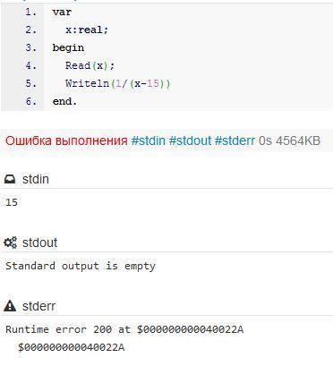 Во вложениях 1 и 2 показано, что происходит при вводе значения х=15 в версии Free Pascal.