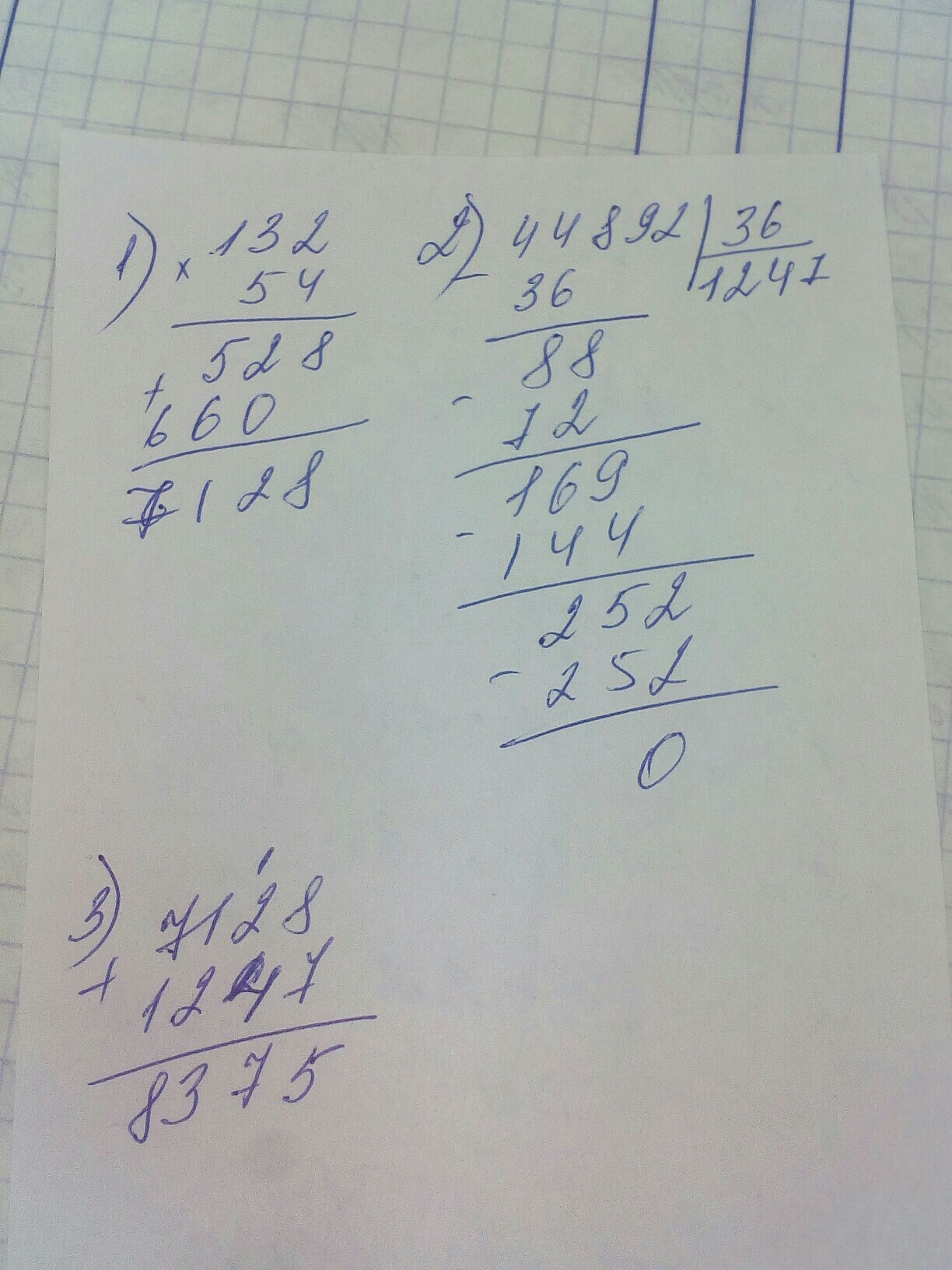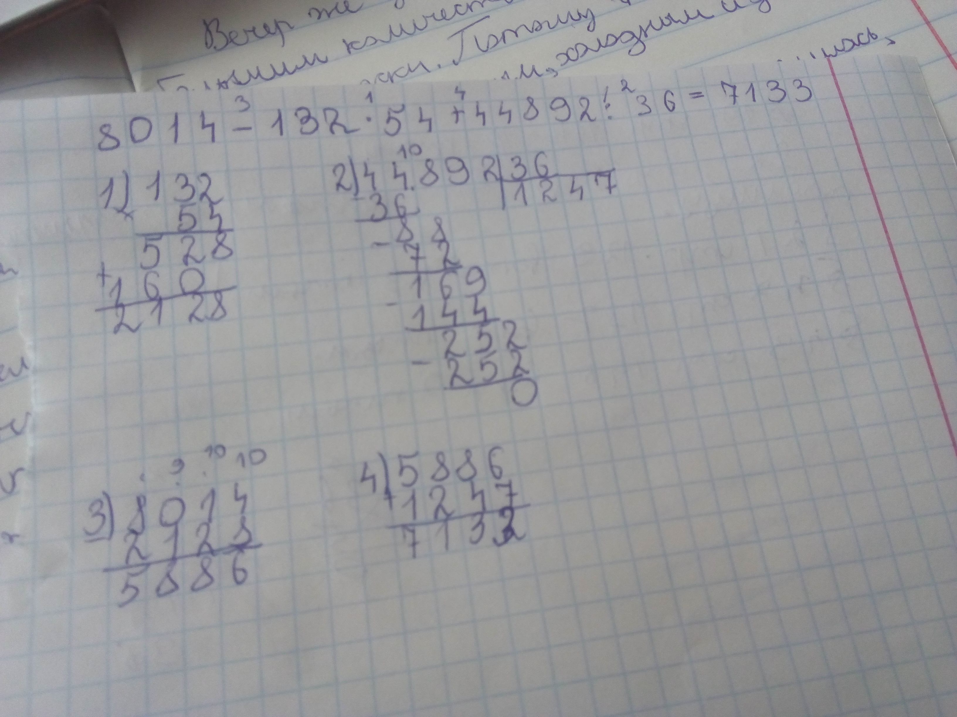 Решите столбиком длинный пример пожалуйста. 8014 - 132 X 54 + 44892 / 36 столбиком и решите.если честно можно и решить на листочке