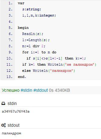 For i:= 1 to M if s[i]<>s[L+1-i] then k:=1;