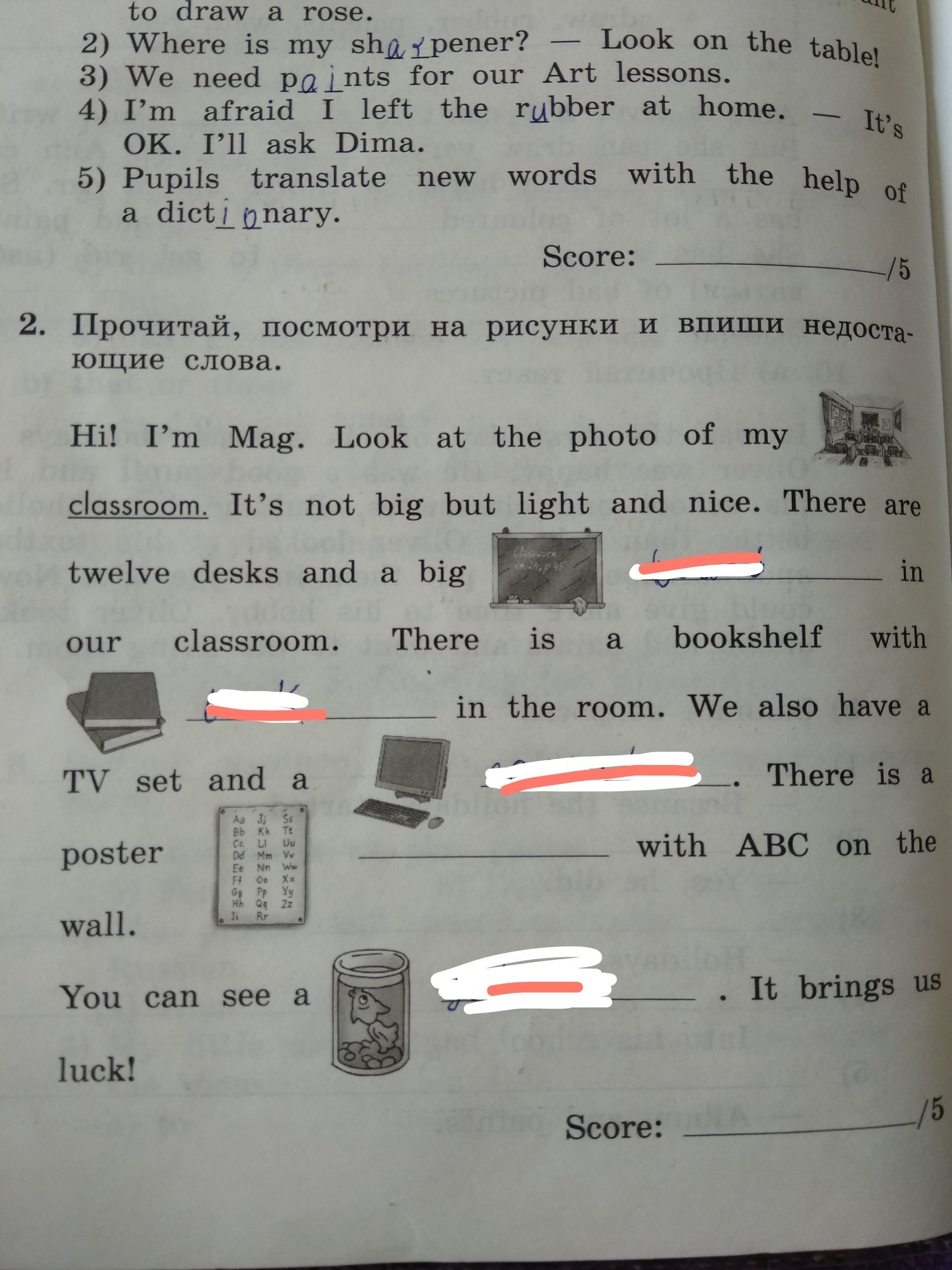 Blackboard 2 book 3 a computer 4 alphabet 5fish