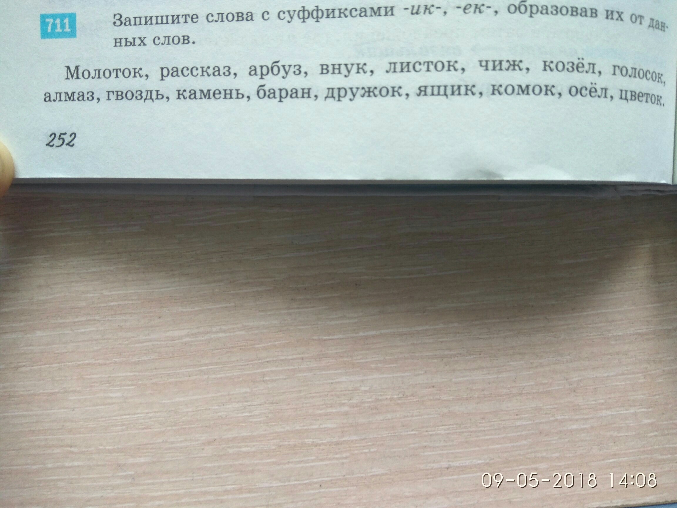 молоточек, рассказик, арбузик, внучек, листочек, чижик, козлик, голосочек, алмазик, гвоздик, камешек, барабанчик, дружочек, ящичек, комочек, ослик, цветочек.