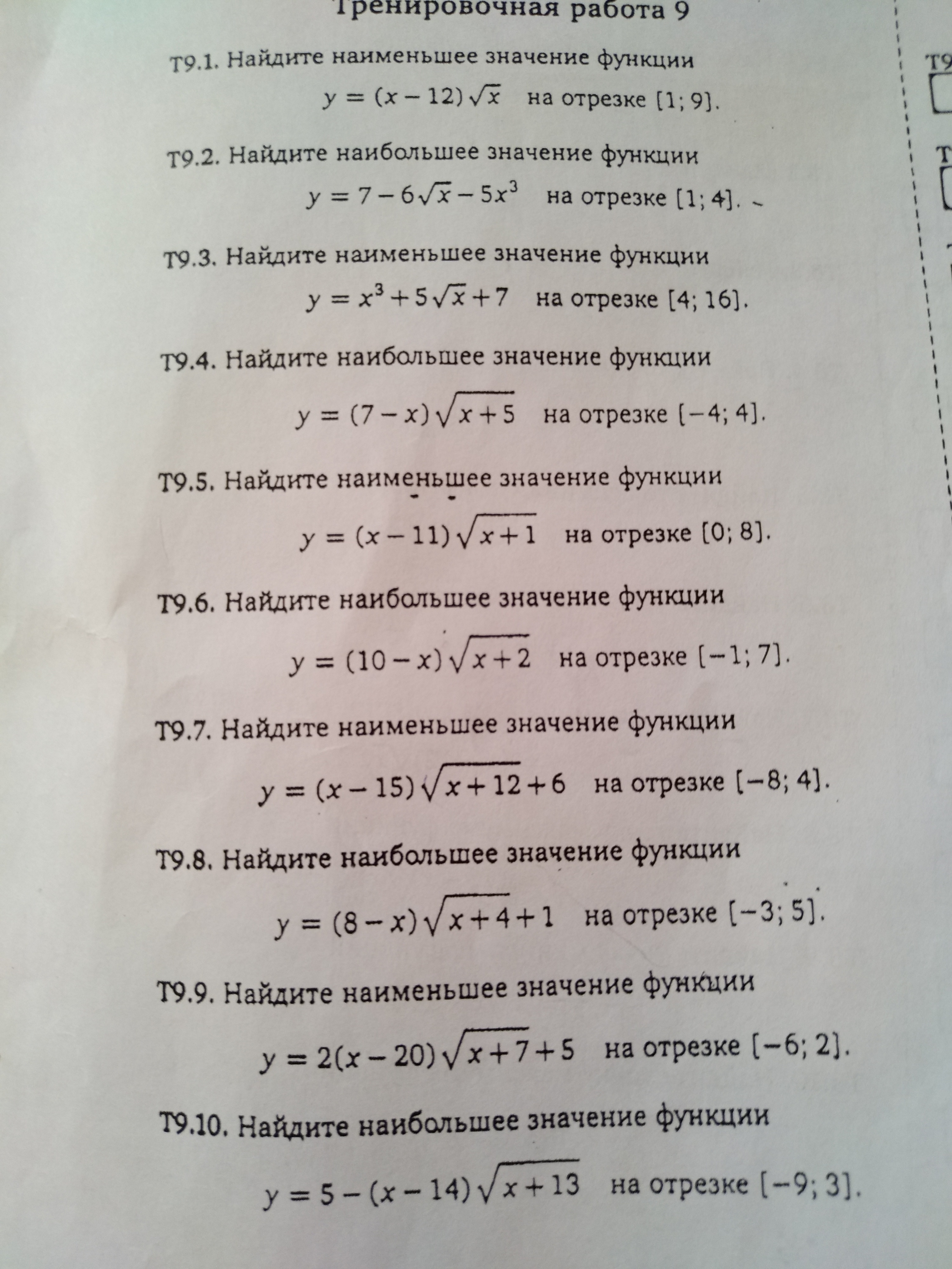 P.S. Cледим за тем, чтобы найденные критические точки входили в заданный в условии промежуток. Если какие-то точки не входят в промежуток, то и не вычисляем значение функции в них.