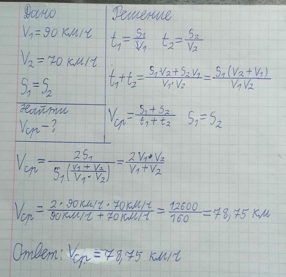 Мотоциклист едет первую половину пути со скоростью 90 км/ч, а вторую половину пути — со скоростью 78 км/ч. Найди среднюю скорость мотоцикла на всём пути. Ответ округли до единиц.