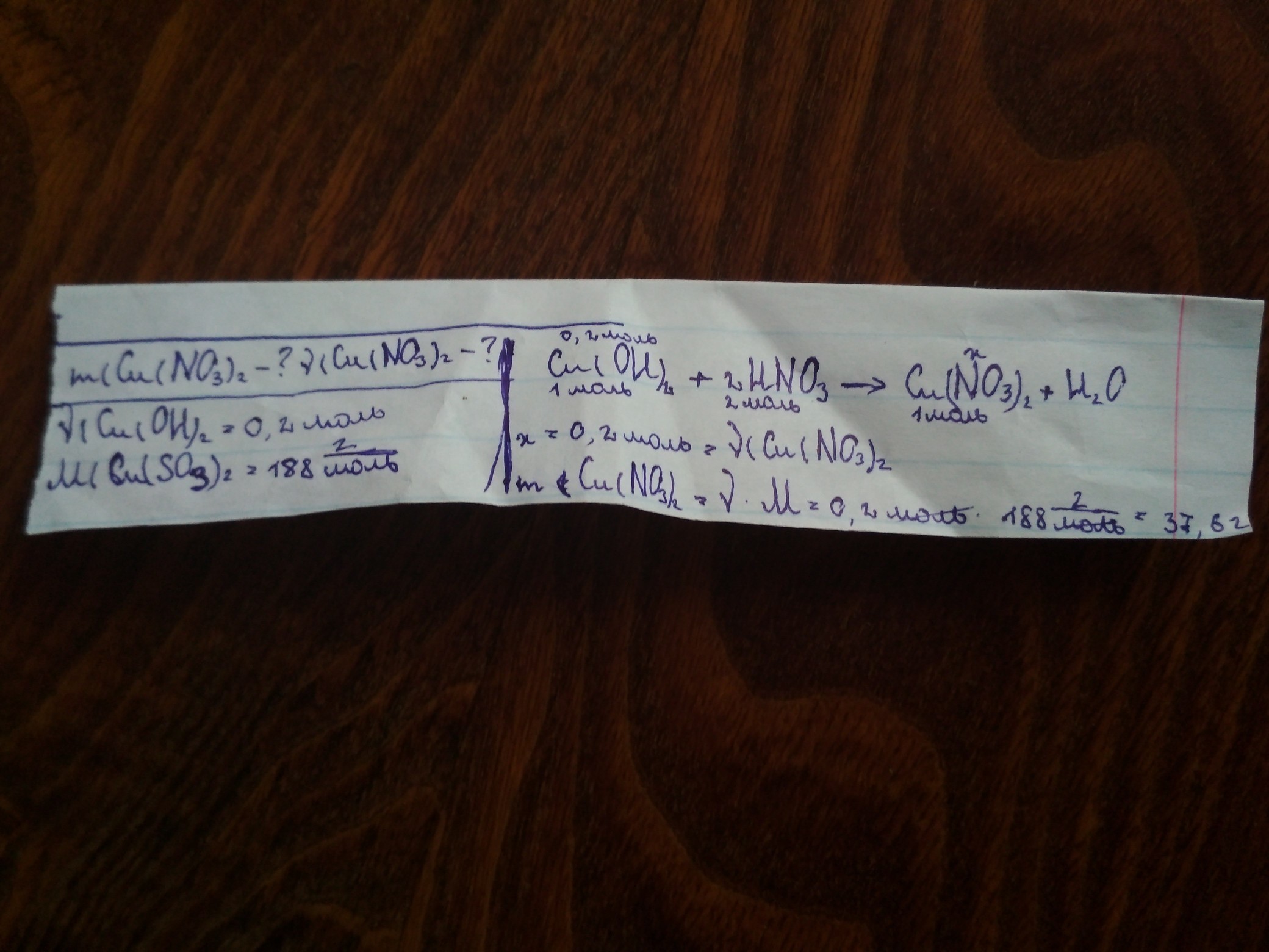 На купрум (II) гідроксид кількість речовини 0,2 моль подіяли нітратною кислотою. Яка маса і кількість речовини солі утворилась?