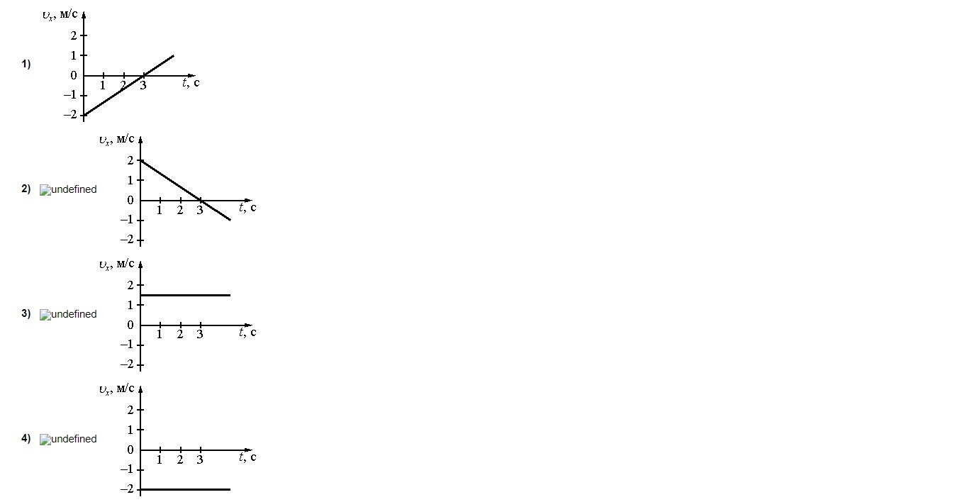 Координата тела меняется с течением времени согласно закону x=1,5t−2, где все величины выражены в СИ. Какой из графиков отражает зависимость проекции скорости движения тела от времени?(Дать развернутый ответ)