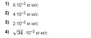 Навстречу друг другу летят шарики из пластилина. Модули их импульсов равны соответственно 5×10–2 кг×м/с и 3×10–2 кг×м/с. Столкнувшись, шарики слипаются. Импульс слипшихся шариков равен