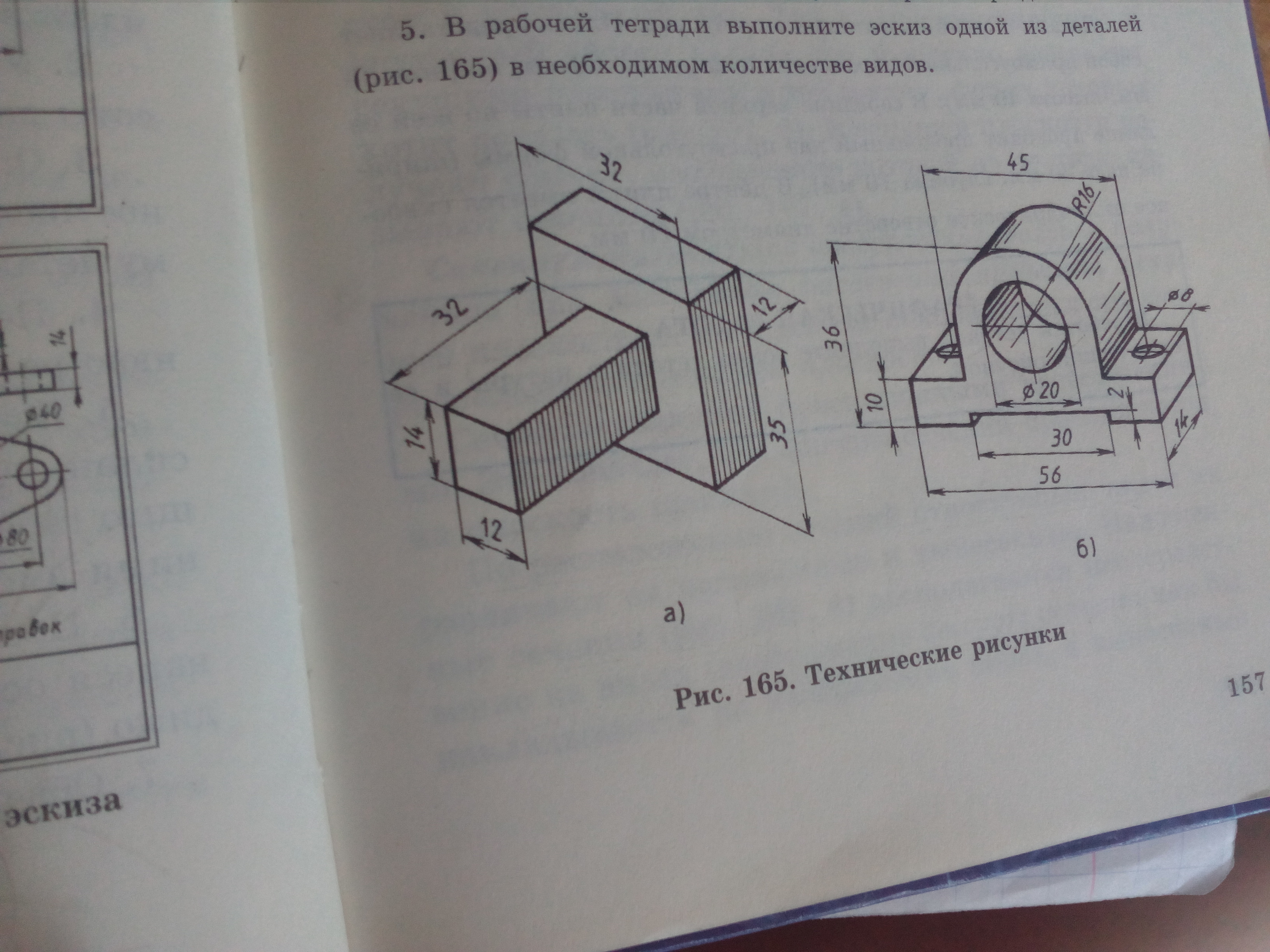 В рабочей тетради выполните эскиз одной из деталей (рис. 165) В необходимости количестве видов .
