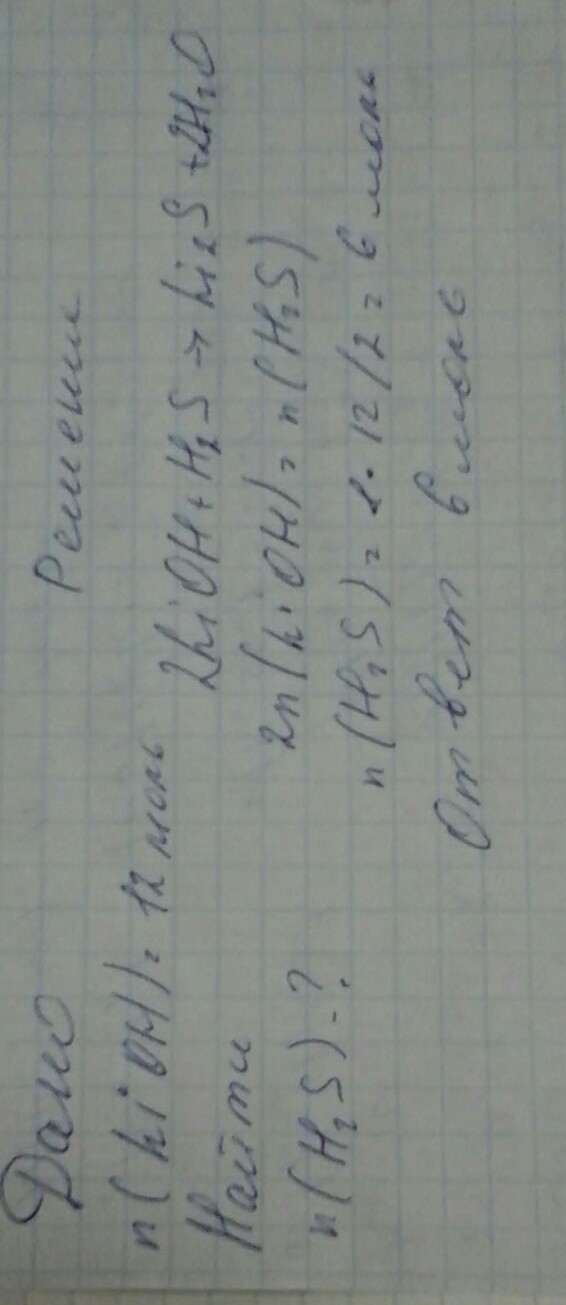 Рассчитай, какое количество вещества сероводородной кислоты необходимо для нейтрализации 12 моль гидроксида лития?