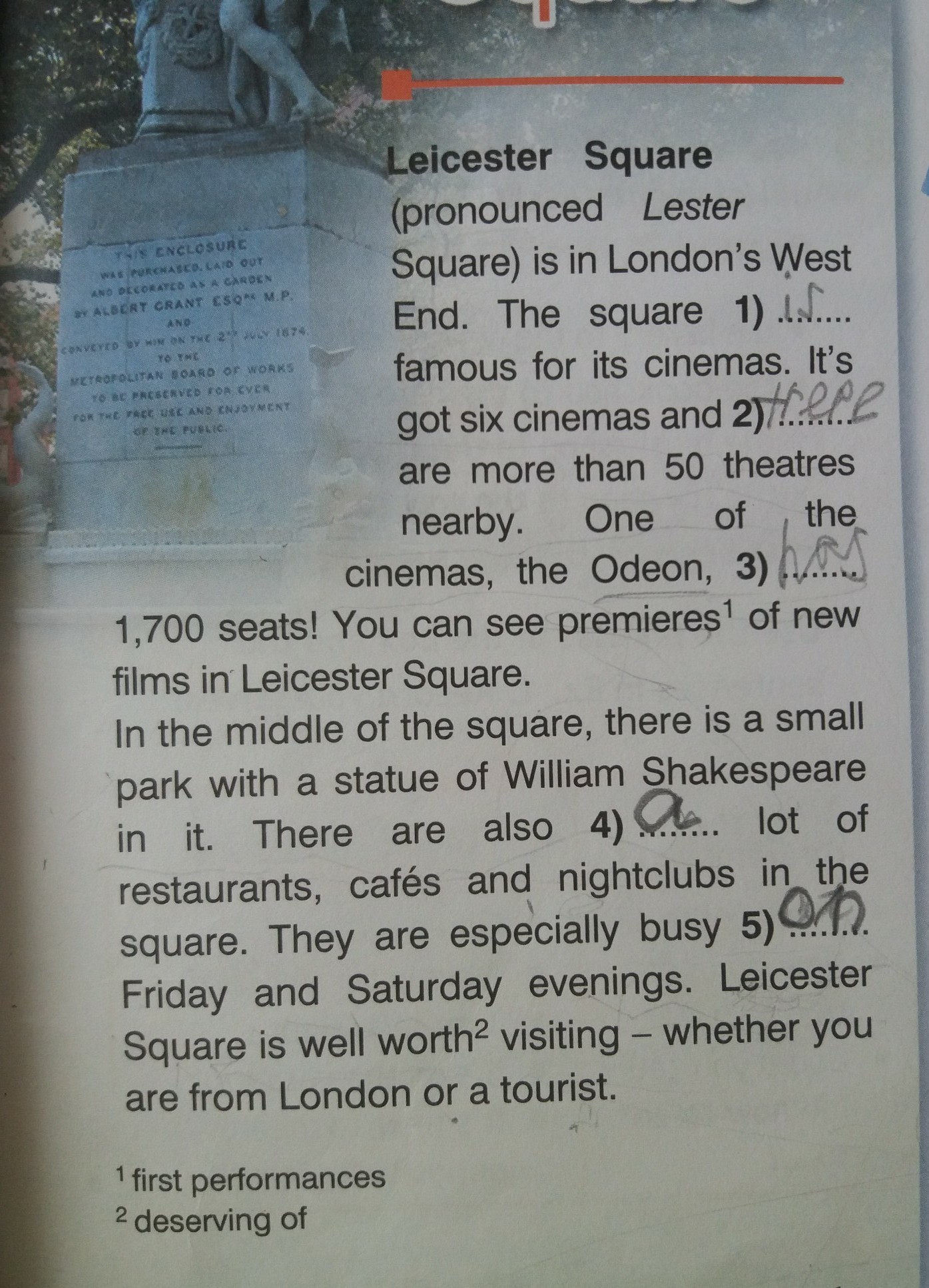 leicester square находится в западной части Лондона. Площадь славится своими кинотеатрами, а дерево - более 50 театров. Один из кинотеатров The Odeon имеет 1700 мест. Вы можете увидеть премьеры новых фильмов на площади Лестера. В середине квадрат есть небольшой парк со статуей Уильяма Шакейпаре в нем. На площади также много ресторанов и ночных клубов. Там особенно заняты в пятницу и субботу вечером. Лестер-квадрат стоит посетить - будь то из Лондона или туриста