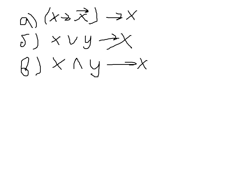 1) F=(x→¬x)→x (Формула А→В=¬А+В )