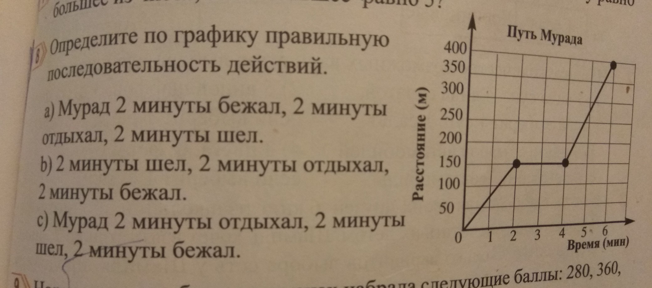 b) 2 минуты шёл, 2 минуты отдыхал, 2 минуты бежал.
