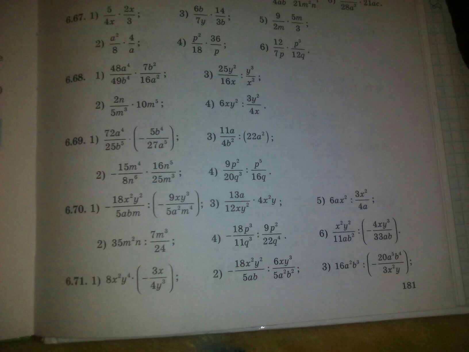 6.68. 1) 48a^4/49b^4×7b^2/16a^2=3a^2/7b^2