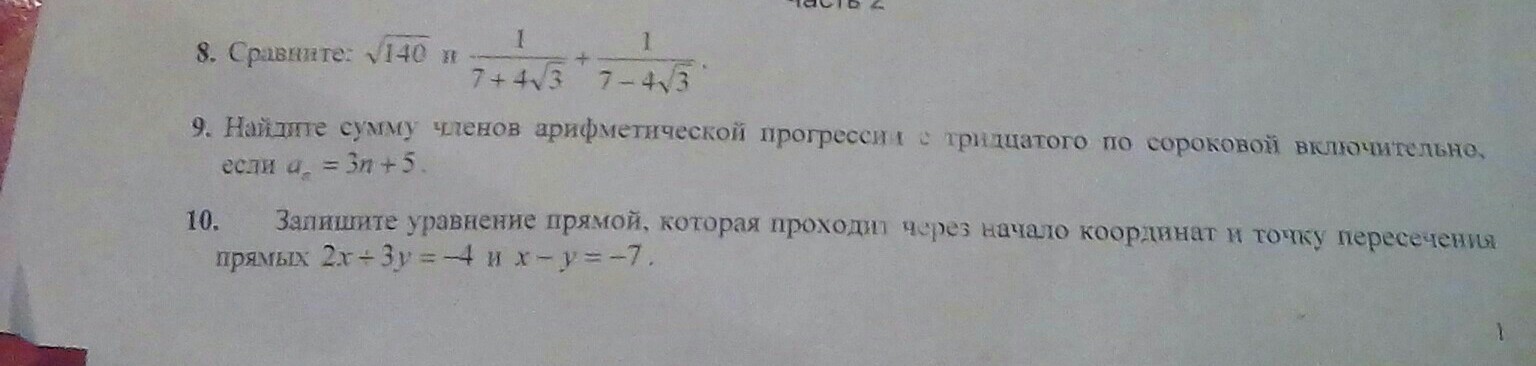 10.Система: 1) 2x+3y=-4 2)x-y=-7