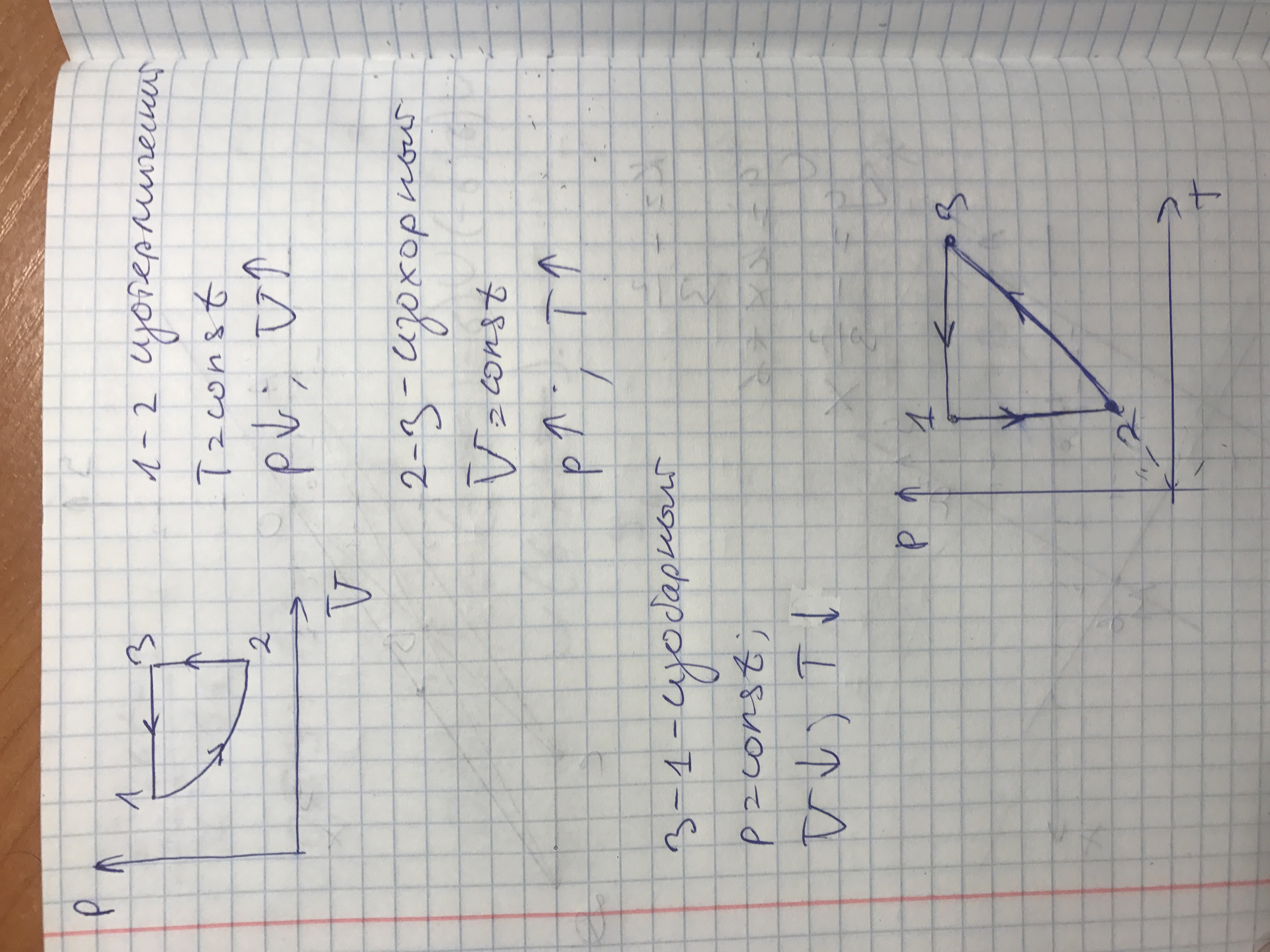 Опишите , пожалуйста, процессы 1,2,3 ( сам процесс ; что увеличивается/уменьшается) и изобразите на графике pT