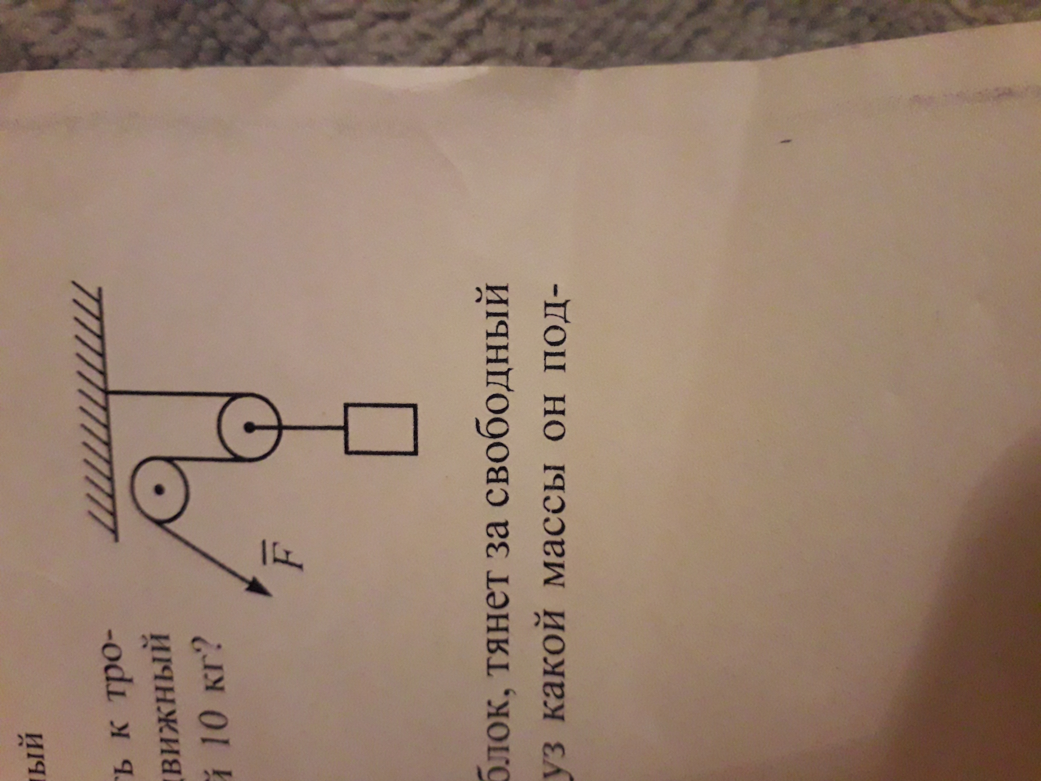 Какую силу f нужно приложить к тросу, переброшенному через неподвижный блок , чтобы поднять груз 10 кг