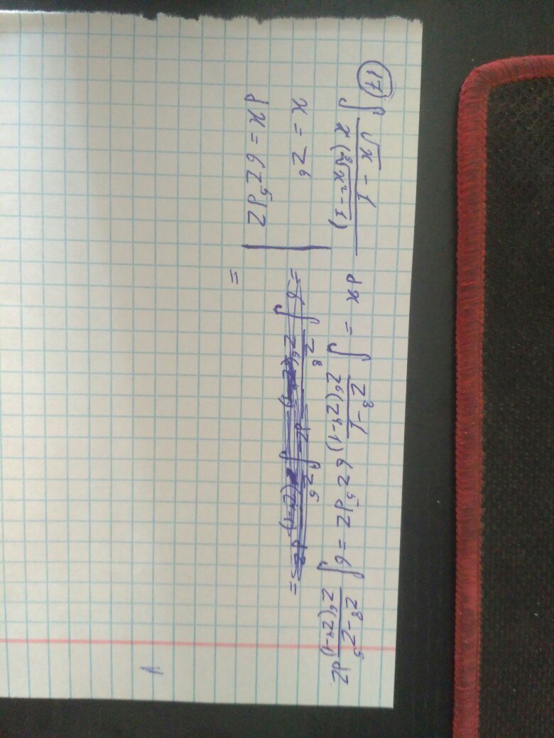 int frac{sqrt{x}-1}{x(sqrt[3]{x^2}-1)}, dx=[, x=z^6; ,; dx=6z^5, dz, ]=intfrac{(z^3-1)cdot 6z^5}{z^6(z^4-1)}, dz=\\=int frac{6cdot (z-1)(z^2+z+1)}{z(z^2-1)(z^2+1)}, dz=int frac{6cdot (z-1)(z^2+z+1)}{(z-1)(z+1)(z^2+1)}, dz=int frac{6(z^2+z+1)}{z(z+1(Z^2+1)}, dz;