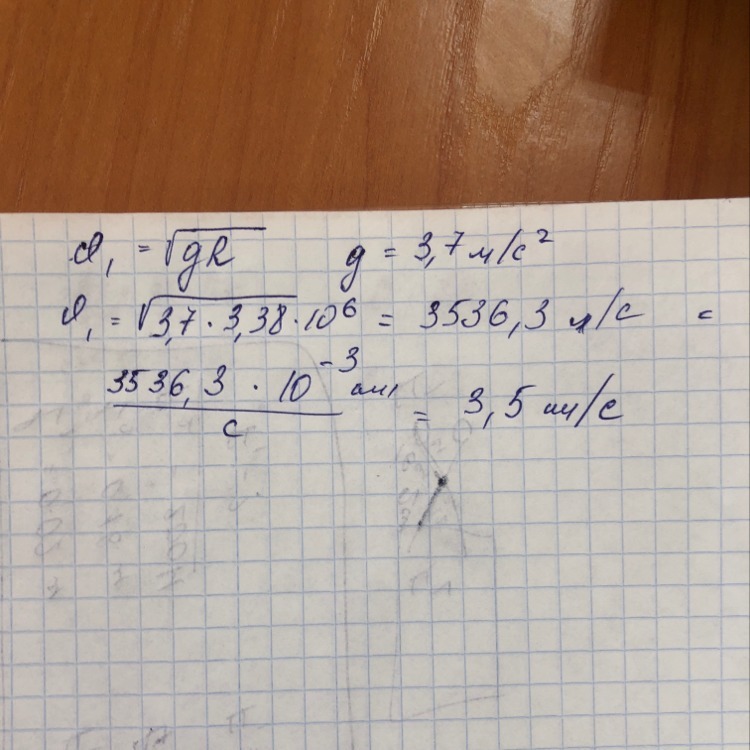 Ускорение силы тяжести на Марсе составляет 3,7 м/с^2 Рассчитайте первую космическую скорость для этой планеты.