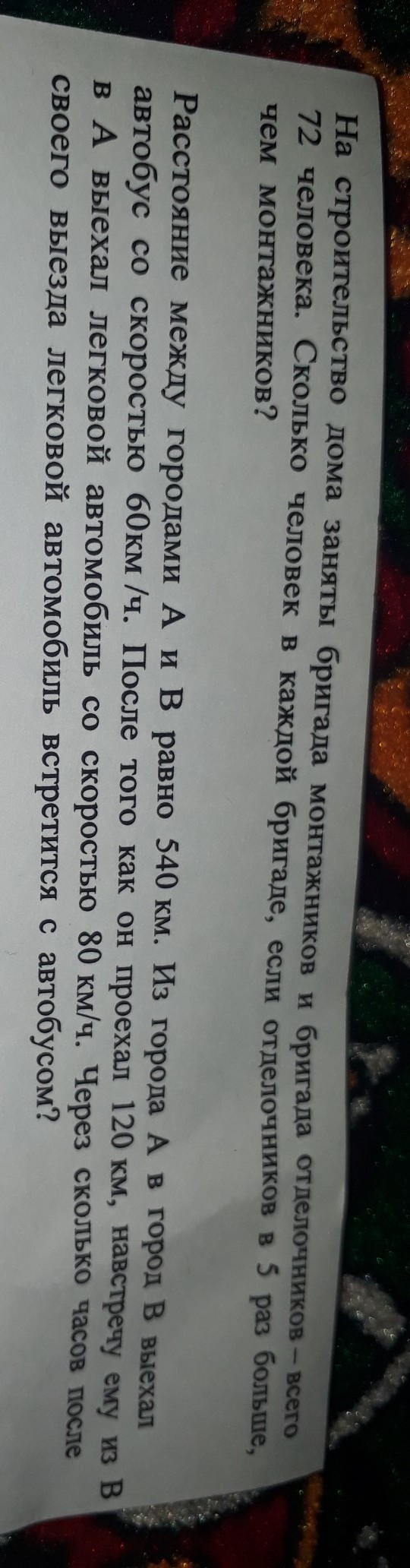 Ответ;: монтажников было 12 человек а отделочников 60 человек.