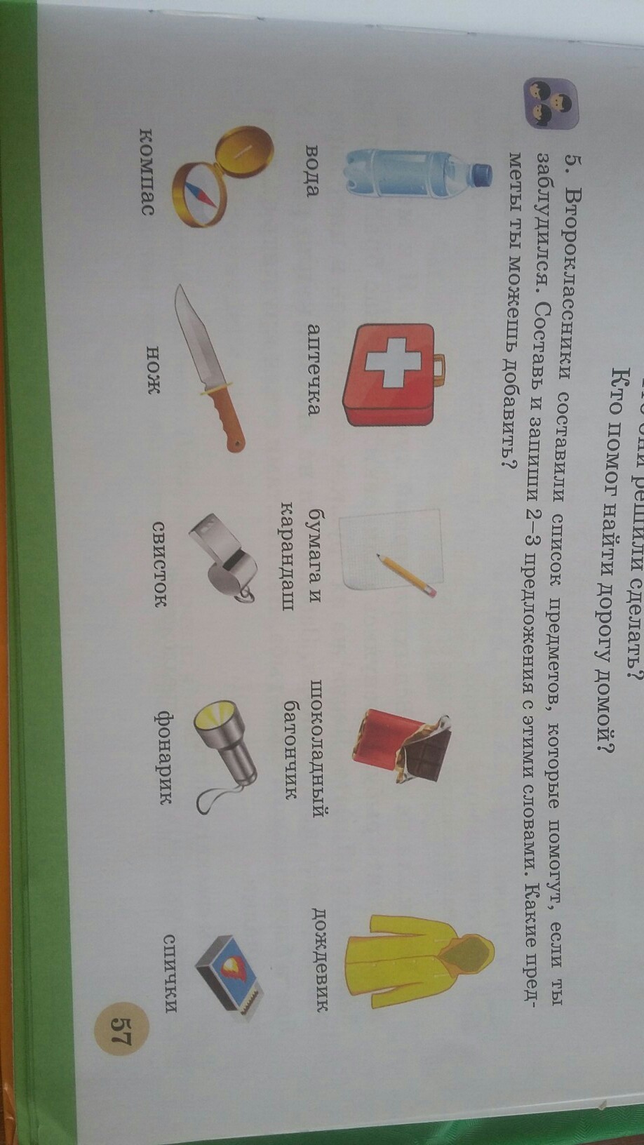 второклассники составили Список предметов которые могут если ты заблудился Составь и запиши два-три предложения с этими словами какие предметы ты можешь добавить