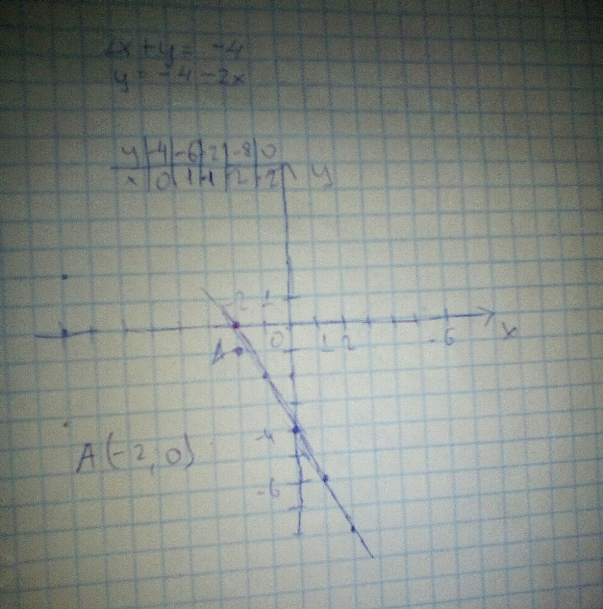Построите график уравнения 2х+у=-4 запишите координаты точки пересечения графика с осью ординат Оу