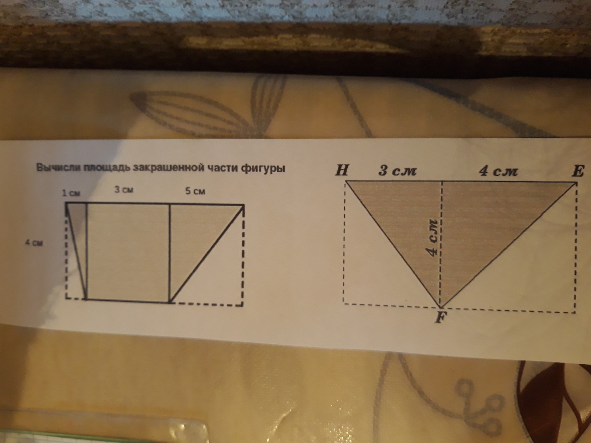 2)S=(3×4)/2+(4×4)/2=6+8=14см^2