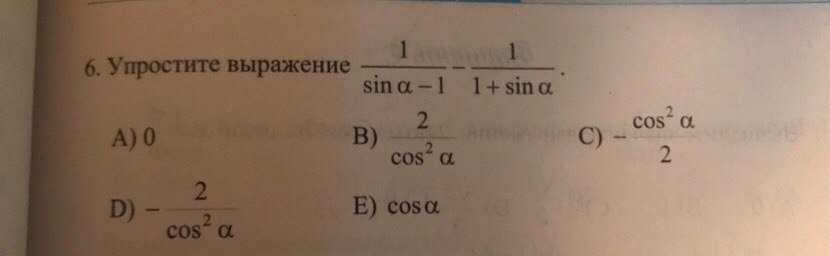 общий знаменатель = (Sinα -1)(1 + Sinα) = Sin²α -1 = -Cos²α