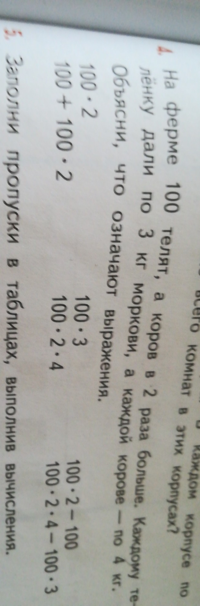 на ферме 100 телята а коров в два раза больше каждому теленку дали по 3 кг моркови а каждой корове по 4 кг
