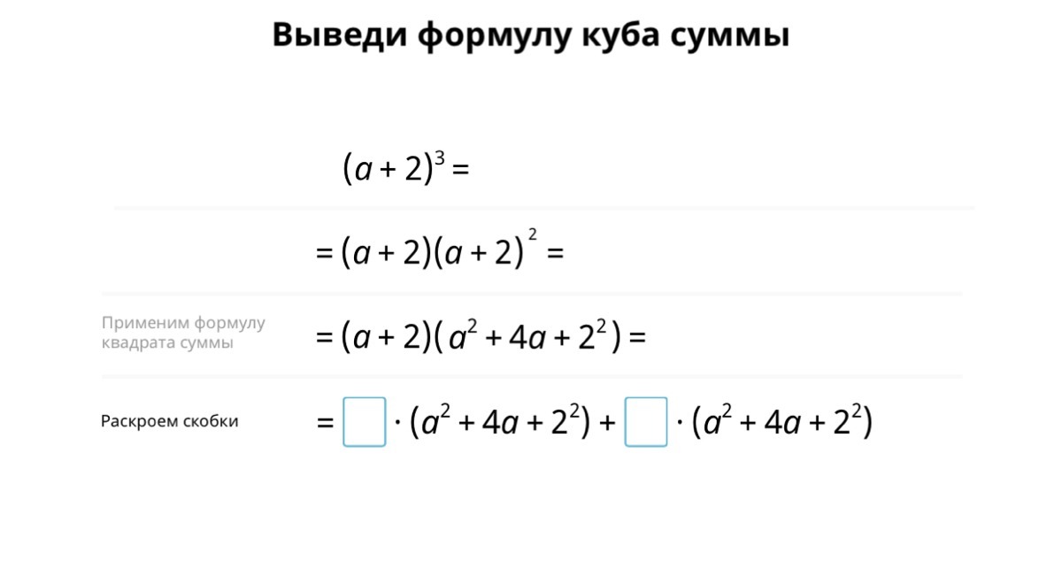 (a + 2)^3 = a + 3a^2 + 3a*4 + 8