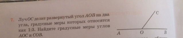 Значит ∠СОВ= 45°, а ∠АОС= 180-40=135° (или 45×3=135°)