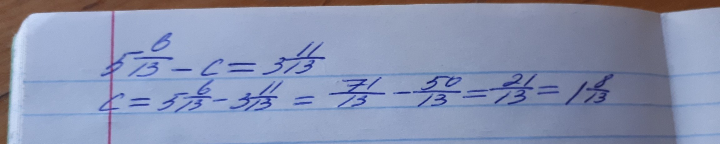Реши уравнение 5 целых 6/13 - c=3 целых 11/13