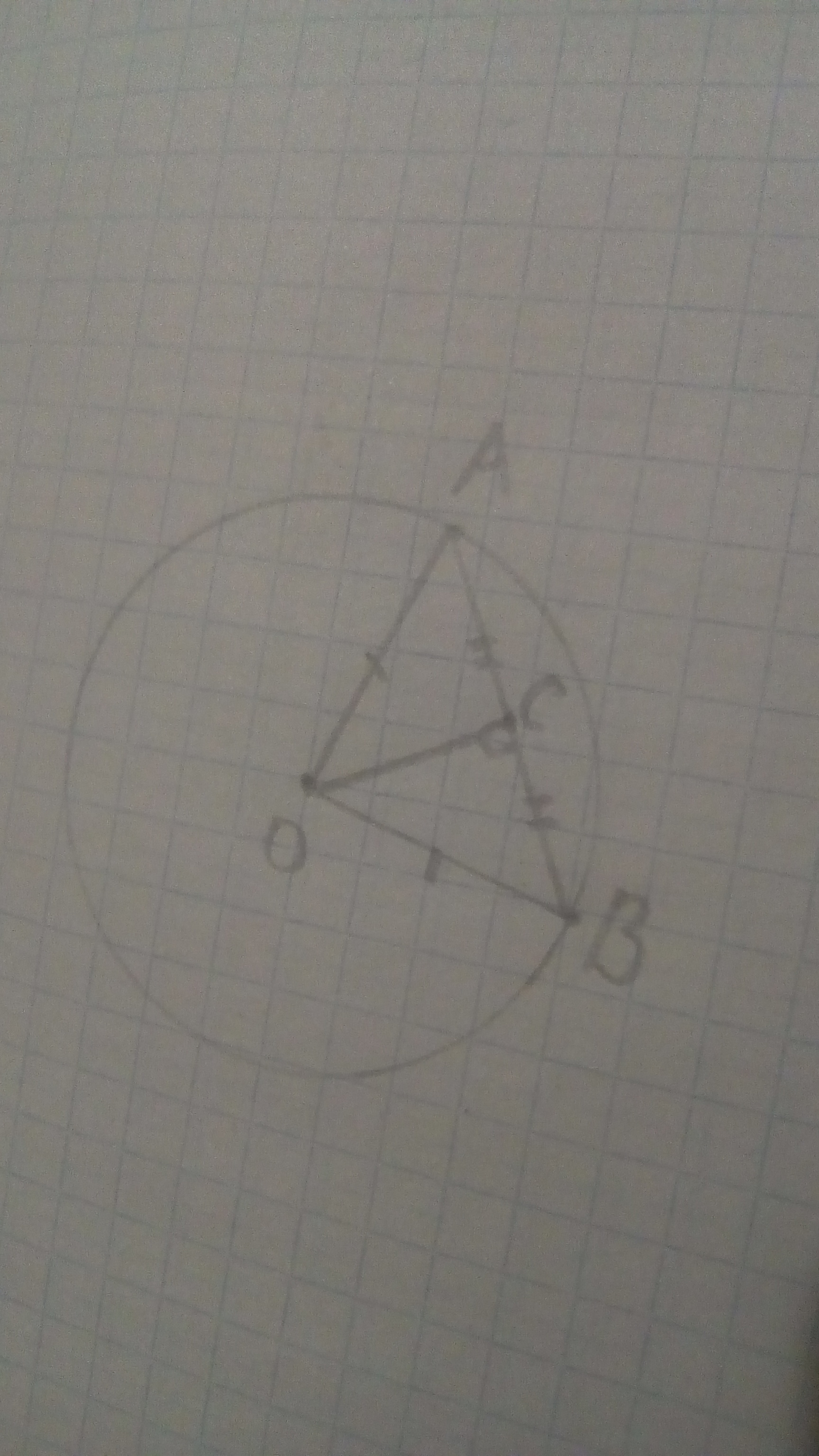 2. Из центра окружности О к хорде АВ, равной 20 см, проведен перпендикуляр ОС.
