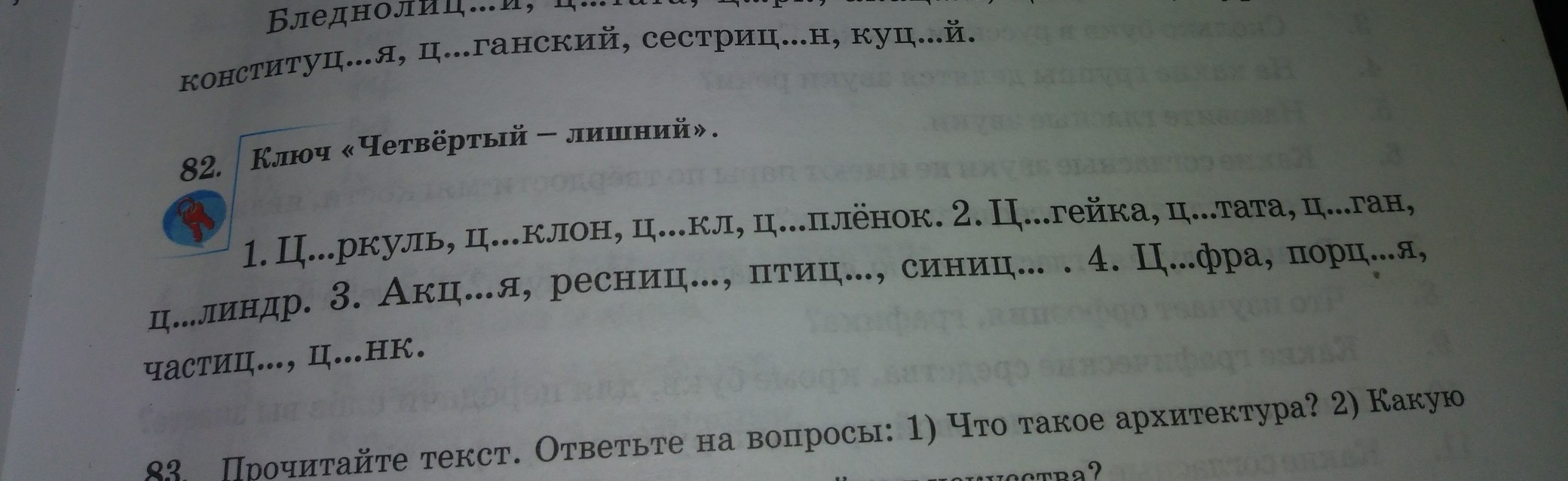 Лишние: 1. цыпленок, 2. цыган, 3. акция, 4. частицы.
