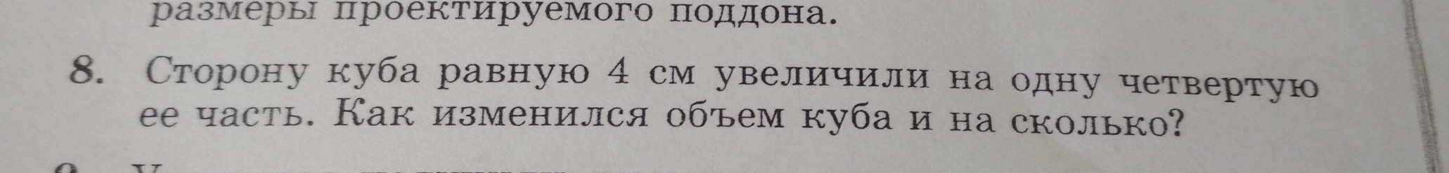 Если ребро исходного куба увеличить на 1 см (¼), то ребро полученного куба будет равно 4 + 1 = 5 см, а объем полученного куба составит 5^3 = 125 см^3.