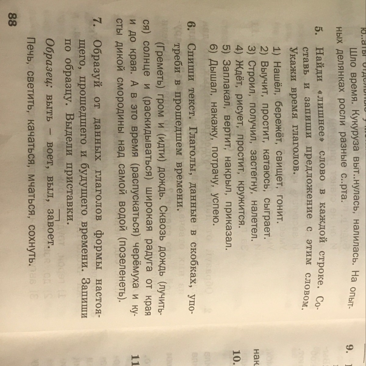 1 печет пек будет печь 2 светит светил будет светить 3 качается качался будет качаться 4 мчится мчался будет мчаться 5 сохнет сохнул будет сохнуть если не правильно сори