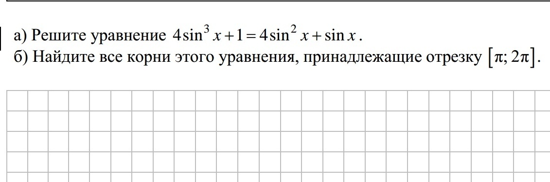 Решите уравнение 4sin³x+ 1= 4sin²x+ sinx